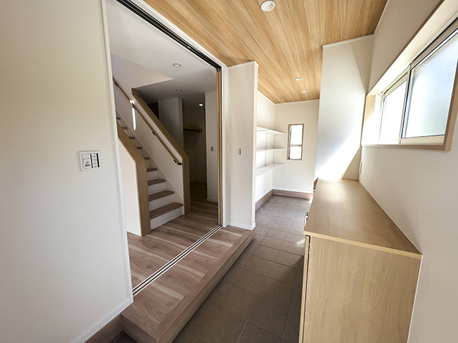 吹き抜けと土間収納のある家