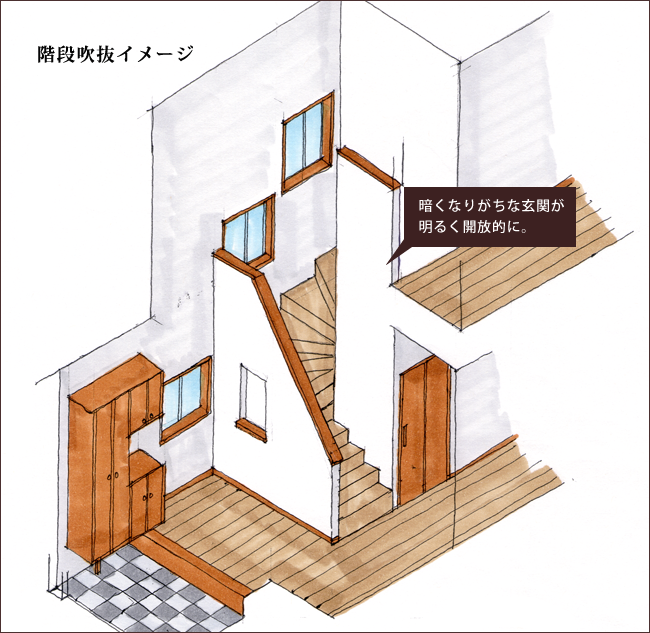 階段吹抜けの場合そのような心配がありません。