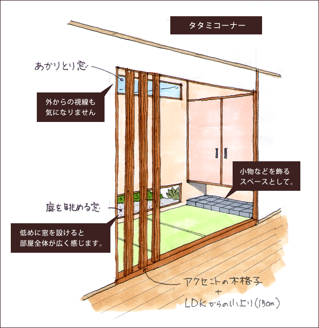 スペースや優先順位を考慮の上「タタミコーナー」のご提案をさせて頂くことがあります。