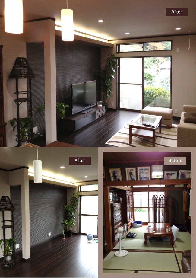 こちらの案件では和室2部屋をつなげてアジアン風リビングに。