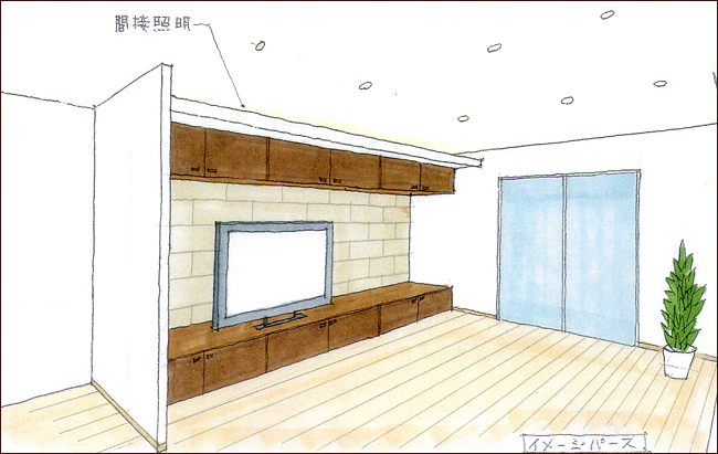 シックな色調と間接照明で広々として落ち着いた空間に仕上がりました。